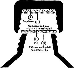 Die Polymerschicht (D) muss sich mit dem Material der Flasche verbinden können und thermisch am Behälterrand verschließbar sein (Abbildung 1). ![]() Abbildung 1 Nachdem der Verschluss auf dem Behälter aufgebracht wurde, passiert er das vom Siegelkopfkopf erzeugte elektromagnetische Feld. Hierbei geschieht folgendes: Im Folienteil wird ein elektromagnetischer Strom (Wirbelstrom) erzeugt, resultierend in einem Wärmeeffekt durch Widerstand. Die erhitzte Folie schmilzt die Wachsschicht. Diese wird durch den Zellulosekarton absorbiert, der sich wiederum von der Folie löst. Gleichzeitig schmilzt die Polymerschicht und die Folie wird hermetisch auf den Behälterrand aufgesiegelt. Wenn der Verschluss geöffnet wird, ist die innere Siegel mit dem Behälterrand verschmolzen. (Abbildung 2). Bei diesem Prozess sind hohe Geschwindigkeiten möglich und somit ist dieses Induktionsverschließverfahren für Hochleistungsanlagen geeignet. ![]() Abbildung 2 Folie an einem Stück Im Gegensatz zu der vorher beschriebenen Siegelleinlage mit Zellulosekartonbasis, ist diese Folie aus Schaum oder Papier. Wenn die Folie (C) erhitzt wird und die Polymerschicht (D) an der Flasche klebt, verschmilzt die Folie vollständig mit der kompletten Unterlage, dem Behälterrand. Die verschiedenen Schichten werden beim Entfernen der Kappe nicht getrennt. Materialwahl Abhängig vom Material der inneren Verschlussschicht, entspricht diese Art der Versiegelung den FDA-Anforderungen als Originalitätsverschluss. Da diese Versigelung luftdicht ist verlängert die Haltbarkeit und Frische des verpackten Produktes. Diverse Siegel-Materialien wurden mit der Zeit entwickelt, die bei verschiedenen Lieferanten erhältlich sind. |
