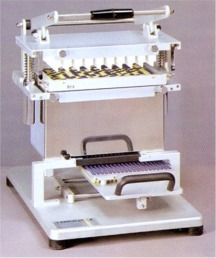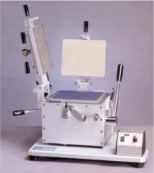 Kapsel-Einsetzmaschine Modell CT-150/2U Zum Beschicken der Kapsel-Füllmaschine RT-150, RT-300. Maschine zum Einsetzen der leeren, noch geschlossenen Kapseln in die Ladetische der Kapselfüllmaschinen RT-150 (fasst 150 Kapseln) oder RT-300 (fasst 300 Kapseln). Mit diesen werden nach Einsetzen der Kapseln die Kapselfüllmaschinen beschickt. Der Maschinenpreis beinhaltet einen Formatsatz zum Verarbeiten einer Kapsel-Grösse. |